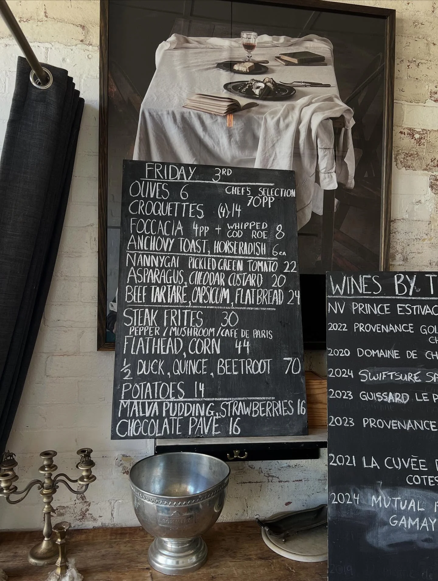 Our drinks list is always evolving, highlighting Local producers as well as new world and traditional french styles.